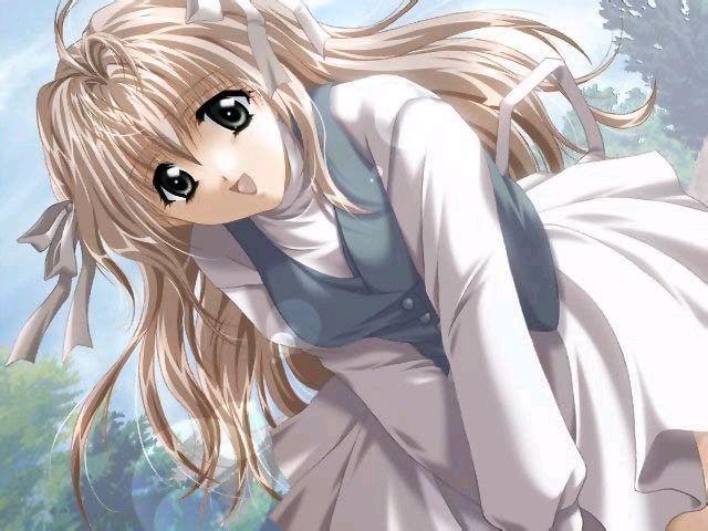 Hinako hat dunkelblonde Haare und grau-gr&uuml;ne Augen. <br />