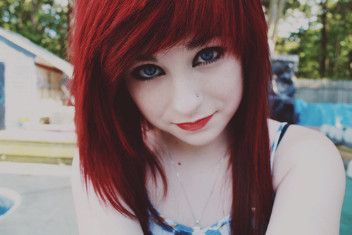 Haarfarbe: lila-rötlich gefärbt