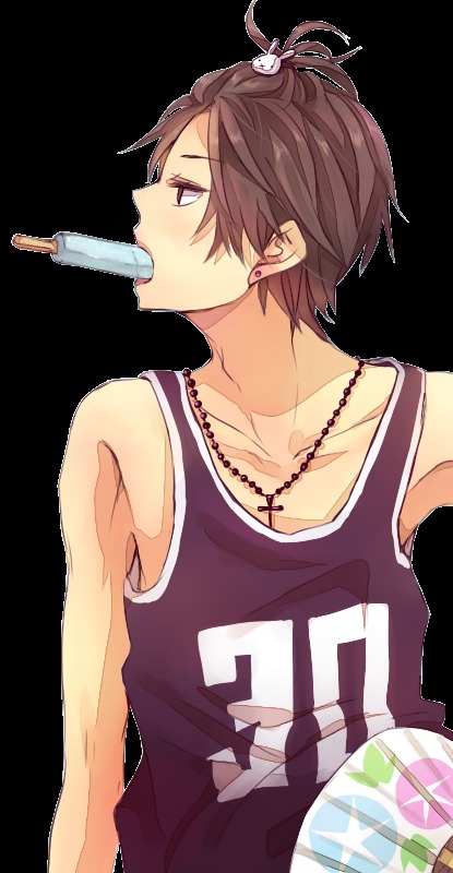 Merkmal: trägt immer lockere Kleidung die ihm zu groß ist, bindet sich zuhause seinen Pony zusammen