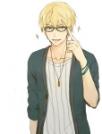 Merkmal: hat links unter dem Mund einen Schönheitsfleck, verlässt ohne seine Kekse nicht das Haus, ist stets bunt und auffällig gekleidet, lächelt so gut wie immer || trägt stets seinen goldenen Verlobungsring am linken Ringfinger (trägt den Ring nur damit er ihn nicht verliert, falls seine Familie zu Besuch kommt), hat immer einen Stift dabei den er entweder hinter sein Ohr klemmt oder in seiner Jacken-/Hosentasche aufbewahrt